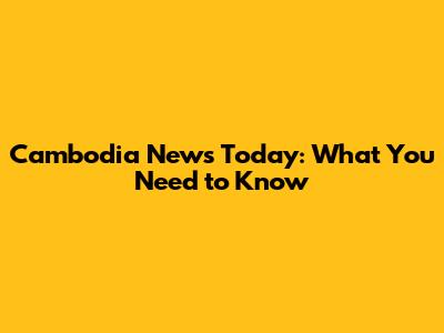 Cambodia News Today: What You Need To Know
