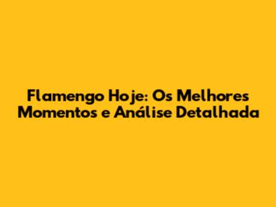 Flamengo Hoje: Melhores Momentos E Análise Completa