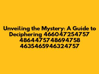 Unveiling The Mystery: A Guide To Deciphering 466047254757 4864475748694758 4635465946324757